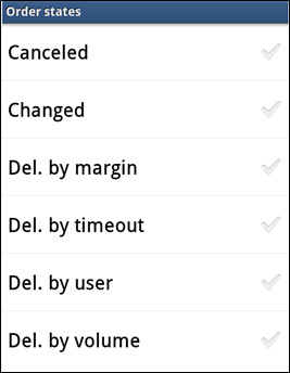 Additionally, you can set the states of orders, which wil be included in the table of orders history (by default orders of all states), by clicking the "Three points" in the bottom of the window to the right of the "State" - the "Order states" window will open: