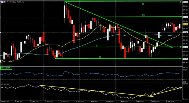 2021 high of 593.03, as a second resistance after the R1 at 566.30 is the main target in case of positive reports and EPS, and on the flip side, first and second supports, respectively at 513.70 and 492.70, will be the levels, which we need to take care of them. Pivot point also sits at 535, where 20&50 DMA lines sitting on each other.
