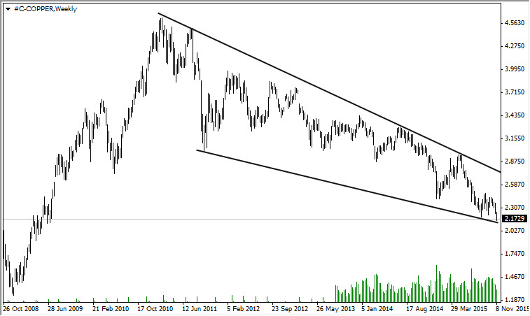 Copper is falling for the 4th straight week and losing 3.3% this week. On Thursday it traded at $4.825 a tonne, slightly above its 6-year lows of $4.800 a tonne.