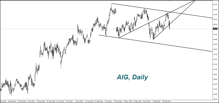 The U.S. Senate Banking Committee approved the liquidation of the Freddie Mac and Fannie Mae mortgage companies. They should be replaced by the Federal Mortgage Insurance Corporation. Shares of the companies fell by about 35%. We do not exclude the negative impact of this event on the American stock insurer (American International Group Inc). During the crisis in 2008, all three companies were actually rescued by government loans. Probably, Freddie Mac and Fannie Mae were unable to pay them off. Of course the AIG is in a much better position. Late last month Fitch even raised its credit rating. However we believe that most of the money will be diverted from AIG to development and debt payment.