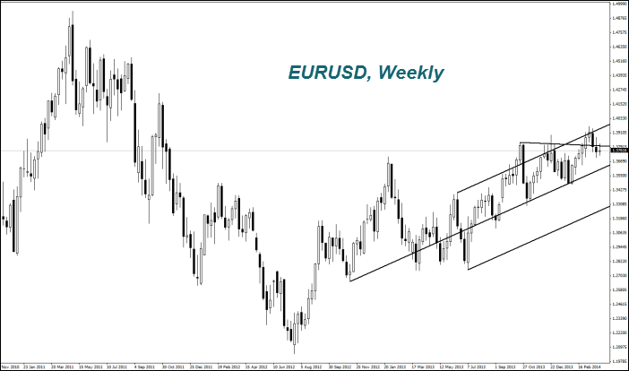 The euro exchange rate (EURUSD) fell slightly on Wednesday. Investors do not exclude negative statements of the ECB head. Today at 13-45 CET the meeting of the European Central Bank will take place which is not expected to change the interest rate. Now it is 0.25 %. A few days ago the IMF advised the ECB to consider reducing the interest rate. According to it, the moderate increase in consumer prices following it will contribute to the revival of the European economy. IMF forecasts a slight increase in European GDP by 1-1.5 % for the next two years. Investors fear that the ECB head Mario Draghi may announce plans for monetary policy easing to avoid deflation in the EU today at 14:00 at a press conference. Recall that the inflation rate was 0.5% in March. Whereas according to the ECB it should exceed 1% and achieve a level of 2% by 2016. Note that before the meeting and press conference of the European Central Bank, the data on retail sales for February will still be released today at 11-00 CET. They are expected to be negative for the single European currency. We think that in general , the current economic situation in Europe is a prerequisite for the weakening of the Euro . On its daily chart it would look as downtrend formation. Note that representatives of the ECB now believe the Euro to be too "expensive" and even call him the victim of devaluative policy of other countries.