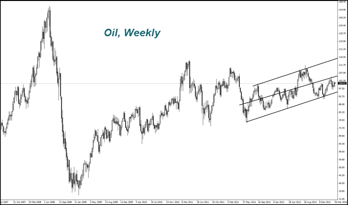 Today the Oil price is growing for the second consecutive day after Libyan rebels blocked oil terminals again. The Crude Oil production in the country fell to 150 000 barrels per day from the last year maximum of 1.4 million. We believe that oil is in a long-term uptrend. Possible sanctions against Russia over the Crimea will not lead to a significant drop in its value.