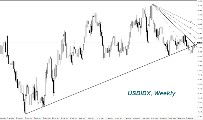 All yesterday's U.S. economic indicators were worse than the preliminary forecasts. Exports in February unexpectedly plunged by 1.1% to 5-month minimum and amounted to $190.4B. As a result, the U.S. payment balance deficit increased by 7.7% to $42.3B, which is the worst indicator since September of the last year. Because of it, almost all American economists have lowered the GDP growth forecasts for the first quarter. And there are many opinions, from 0.6% to 1.9 % in annual term. Recall that the U.S. economy grew much more in the fourth quarter of last year, by 2.6%. However, the GDP is not coming soon, only on April 30. We paid attention to that to note a theoretical readiness of investors to the possible macroeconomic negative. Nevertheless, the U.S. Dollar Index (USDIDX) rose yesterday. Market participants are expecting the highest level during four months, increasing the number of Nonfarm Payrolls in March by 200 thousand people. At the same time, the unemployment should drop to 6.6%. The U.S. labor market data will be released today at 14:30 CET. The prognosis is positive for the U.S. Dollar. We are not excluding that if it works, the U.S. stock market may be corrected downward. Note that Google has issued additional shares and doubled their total magnitude. Accordingly, the share price was half reduced, but investors have not lost anything since they started having twice more shares. The emission is aimed to raise finance for new projects. Now the S&P 500 includes 501 security and still 500 companies. The increase was due to a new Google emission.