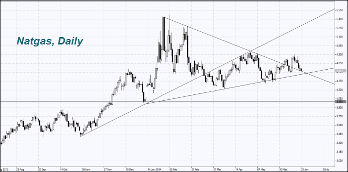 The NATGAS price dropped. The US Energy Information Administration predicts an increase in its production in the U.S. by 4% for 2014, compared to last year. Meanwhile, according to the Gulf Coast Power Association, the GAS price at $ 4 per million British thermal units is too low for sustained growth in shale gas production. We do not exclude that this level can be a fundamental support on the NATGAS.