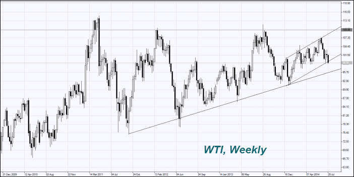 Oil prices fell considerably. This trend fits well into the logic of the economic sanctions of Western countries on Russia, since the share of hydrocarbons in Russian exports outperforms 70%. US oil reserves have reduced by 3.7 million barrels this week as gasoline inventories were increased to the six-month high; diesel reserves and fuel oil - up to a maximum since September of 2013. US oil exports reached its high in 15 years and amounted to 288,000 barrels per day (bpd) in May. Meanwhile the bulk of the raw materials is supplied to Canada. The volume exported to European countries is only 25,000. bpd, but this volume is expected to be raised. OPEC increased oil extraction by 140,000 bpd to 30.06 million bdp in July.