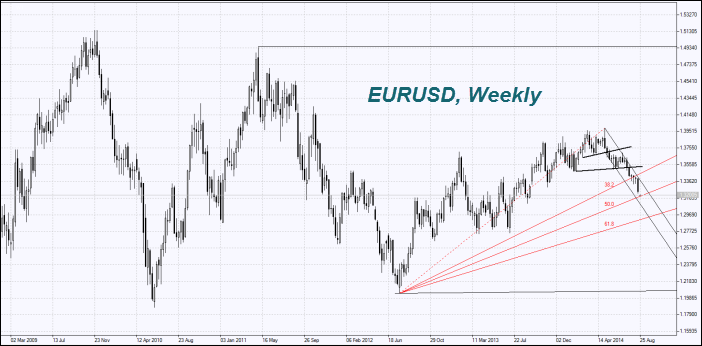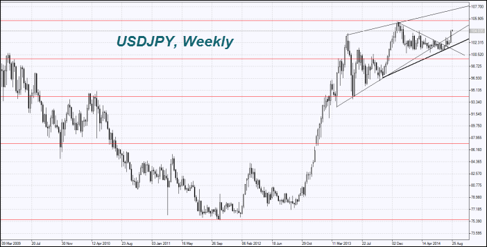 On the contrary, on Friday, the ECB President Mario Draghi noted the weakness of the European economy and the need to stimulate it at the expense of negative rates and the euro issue (TLTRO) in the future. Accordingly, the single currency rate fell. Note that the EU inflation rate in July fell to the lowest level since October 2009 and reached 0.4%. This increases the deflation risk, and is considered to be the main argument in favor of the euro issue. According to the European Central Bank, the inflation rate is expected to be close to 2%, but not more. European stock prices are climbing in anticipation of a liquidity inflow. Several tentative indices of the German economy (IFO) are to come out today at 8-00 СЕТ. They are expected to be negative, due to the Ukraine situation and anti-Russian sanctions. You can find more information about the forex market trends by clicking weekly video overview on the IFC Markets website.