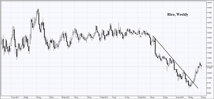 The rice quotations have corrected down slightly during the last two weeks and resumed their growth today. The Asian countries increase the rice stocks on the concerns that El Nino may damage the crop. Let us emphasize that the crop futures quotations are a bit behind the rice price growth.