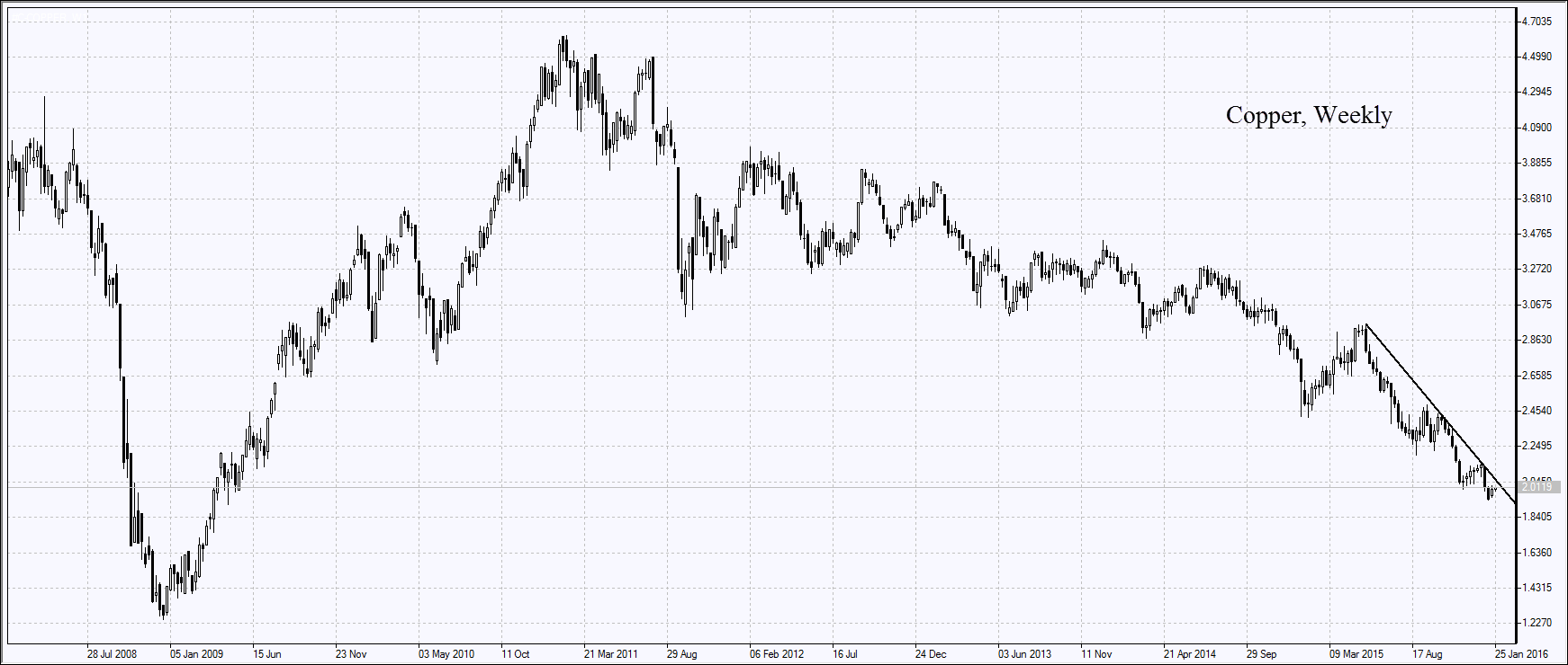 Gold is advancing on Monday. Markets become less confident in the Fed rate hike in the near future amid some signs of the global economic stagnation. The next US watchdog meeting is to take place on Wednesday. On Friday the US GDP for the 4Q will come out. It is expected to increase by 0.8%. According to the current forecasts, the US GDP is to increase by 2.5% in 2016. Some investors are doubtful of it and invest in precious metals. The net longs in gold and silver on COMEX have reached the 2-month high, according to the U.S. Commodity Futures Trading Commission. On the other hand, in copper the net short position was formed. Investors worry the demand for copper may fall amid the slowdown in the Chinese economy.