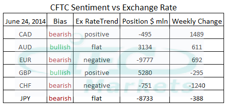 The latest report by Commodity Futures Trading Commission (CFTC) covering data up to the 24th of June showed that investor’s bias is moving mainly against the US dollar. As we can see at the CFTC Sentiment table the Euro after three weeks of losses decreased its net short position by $0.69 billion against the US dollar. Investors maintained their downside bias on the Swiss franc which it went into a net short position of $0.75 billion. The US dollar in general was weaker because of talks of a later time rate hike by Fed and also due to IMF growth cut. The risk appetite recovered on the week ending on the 24th of June and as a consequence Swiss, Yen and US dollar were weaker.