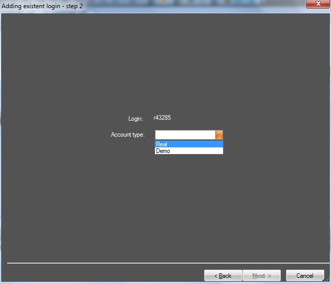 After pressing "Next" button you need to indicate your account type Demo or Real.
