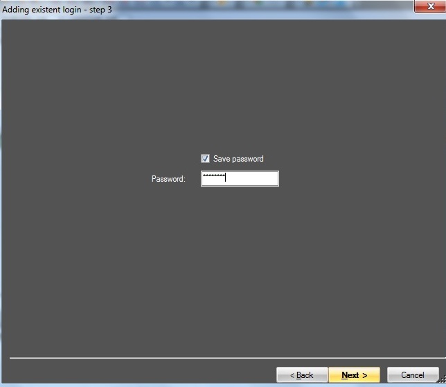 In the next step you need to write your account password and tick the "Save password" check-box, so as you are automatically connected to that account every time you open the terminal.