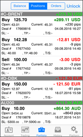 List of Opened Positions | Forex iOS | IFCM Turkey