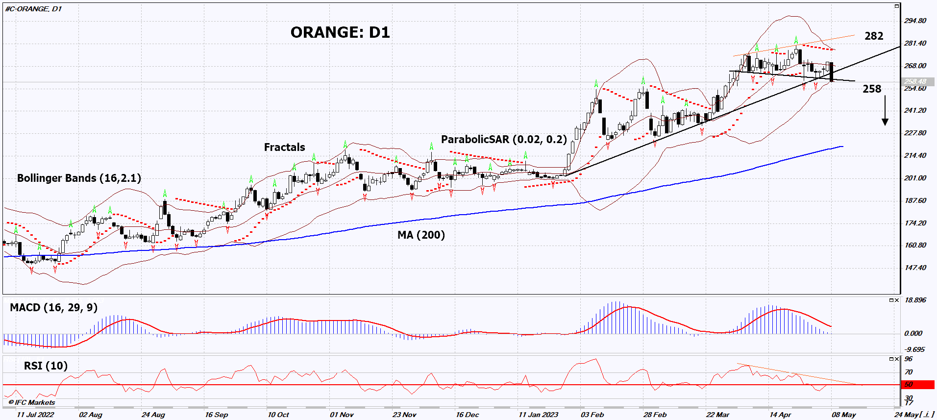 In April 2023, the United States Department of Agriculture (USDA) forecasted the orange crop in the US for the 2022/2023 agricultural season to be 2.57 million tones. This is a quarter less than the previous season and the lowest in over 50 years. The small crop in the US may be due to poor weather conditions and Citrus Greening disease. Some market participants are hoping for an upward revision in the forecast. The USDA could potentially release a new estimate in their review on May 12. The correction in ORANGE prices started from a new historical high. It is worth noting that according to the USDA forecast, global orange production in the 2022/2023 season will only decrease by 5% to 47.5 million tones. However, the price of ORANGE has increased by more than 1.5 times in the past 12 months.