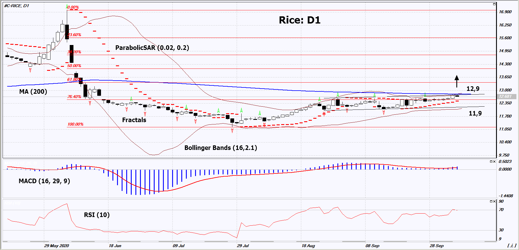 India Meteorological Department (IMD) reported that monsoon rains in India in 2020 will be higher than normal, the same as in 2019. Previously, such a situation with excess precipitation for 2 years in a row was observed only in 1958 and 1959. Rainy weather can reduce the rice yields, as well as cotton and soybeans.The publication of the estimate of the rice crops in the US by the United States Department of Agriculture (USDA) on October 9 may become a significant factor for quotes. Recall that the US rice stocks as of August 1, 2020 were 37% less than in the same period of 2019. The USDA in its September review expected a 22% increase in the US rice yields in the current 2020/2021 season. These data can affect quotes.