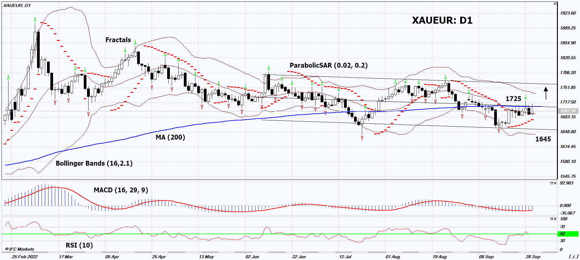 Preliminary inflation in Germany (Germany Consumer Price Index) reached 10% y/y in September. This is the highest since 1951. Earlier, inflation in German industry soared to 45.8% y/y in August. All this can increase economic risks and contribute to an increase in demand for gold. We note that preliminary inflation for September in the entire European Union also amounted to 10% y/y. This is much higher than the European Central Bank rate, which is currently 1.25%. On October 4, the speech of the head of the ECB (European Central Bank President Lagarde Speech) is expected, which may affect the dynamics of the euro. The next meeting of the ECB will take place on 27 October. Gold may be supported by a decrease in the yield of the United States 10-Year Bond to 3.7% per annum on Friday from 4% per annum on Wednesday last week.