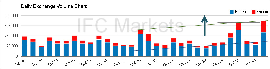 Note that the volumes of gold futures traded on the Chicago Mercantile Exchange confirm the current trend. Another high was being updated yesterday. Now it is located above the level of 375000 contracts. We suppose the further trend continuation would not allow the volume to fall below 187 000. You can monitor the trading volume by clicking here.