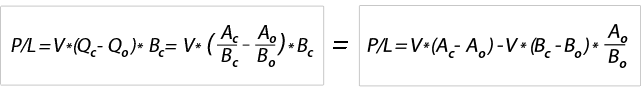 Açık pozisyonların ABD doları olarak kar veya zararı basit ve tamamen şeffaf bir şekilde hesaplanır. Soldaki förmüller, "Altın enstrümanların" birinde açılan uzun pozisyon için kar/zarar hesaplamasını gösterir. Basit bir hesaplama, finansal sonucun, baz varlığı aynı ama ABD doları karşısında ve birbirine ters olan iki eşdeğer işlemin kâr/zarar sonucuna denk geldiğini doğruluyor (hesaplama sağdadır).