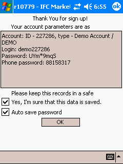 6. Tebrikler! Deneme hesabı açılmış. Ticari hesabın bilgileri kaydedin ve hatırlayın: