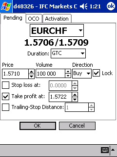 İşlem sırasında “Volume” alanında işlem hacmisini belirlememiz gerekiyor(birinci döviz çiftinde)belirlenmiş fiyat seviyaesini “Price”alanında belirliyoruz,pozisyonu “Direction”alanında belirliyoruz.Ayrıca Stop Loss ve Take profit emirleri verebilirsiniz,onlar atomatiken pozisyon açılınca çalışmaya başlarlar.Emiri vermek için “OK”tuşuna basınız ,vazgeçme için “Cancel” tuşuna basınız.Vazgeçilen emir “Pending” penceresinde çıkacak.İşlemi “Orders”,“Sum open positions” ve “Account history”, görebilirsiniz ,sonuçları ise “Orders history” de. Emirleri “Orders” penceresindeki “Set order” seçerek değiştirebilirsiniz..